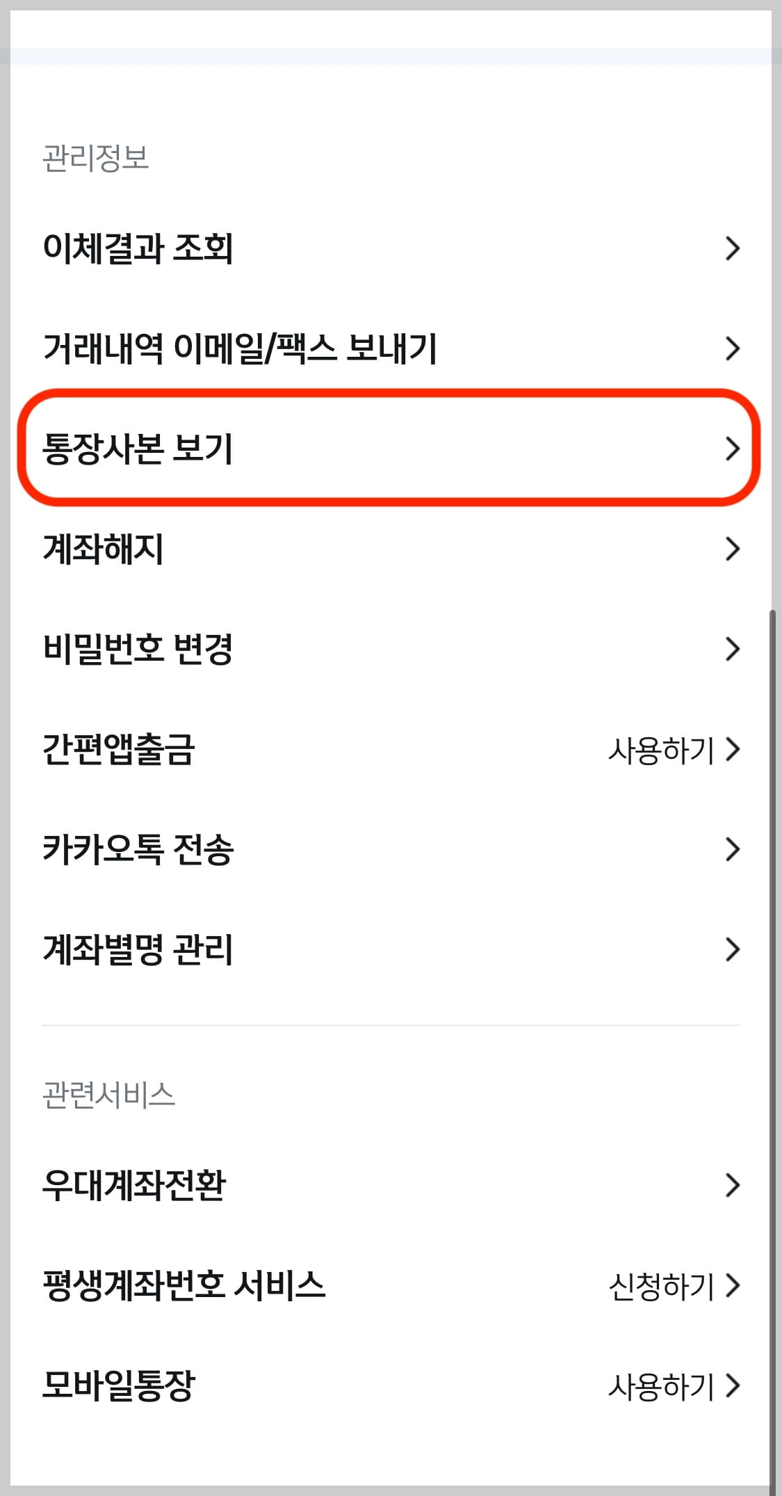 - '계좌관리' 선택