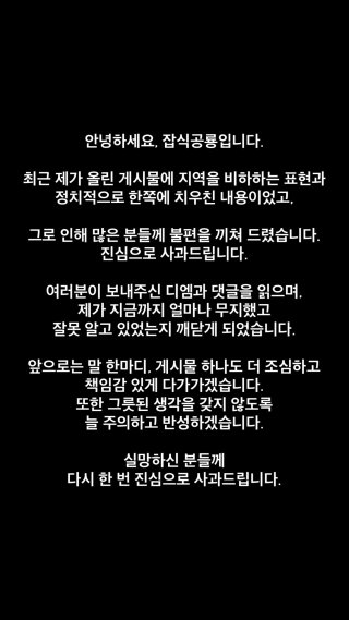 논란이 커지자 잡식공룡은 문제가 된 영상을 비공개 처리하고, 커뮤니티 게시판을 통해 사과문을 게시했습니다.
