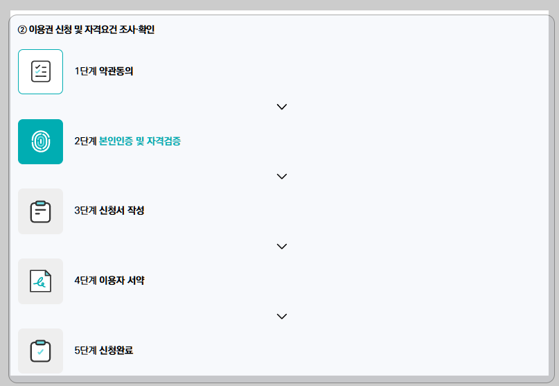 기본 인적 사항 + 증빙서류 첨부. - 승인 후 이용권 발급