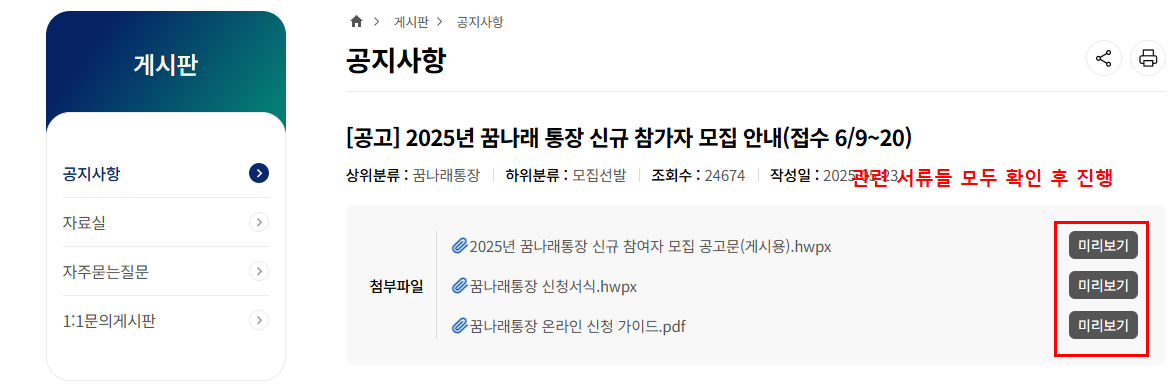 - ✅ 공고뜨자마자 서류 점검: 주민등록등본, 소득자료 등 즉시 발급 준비