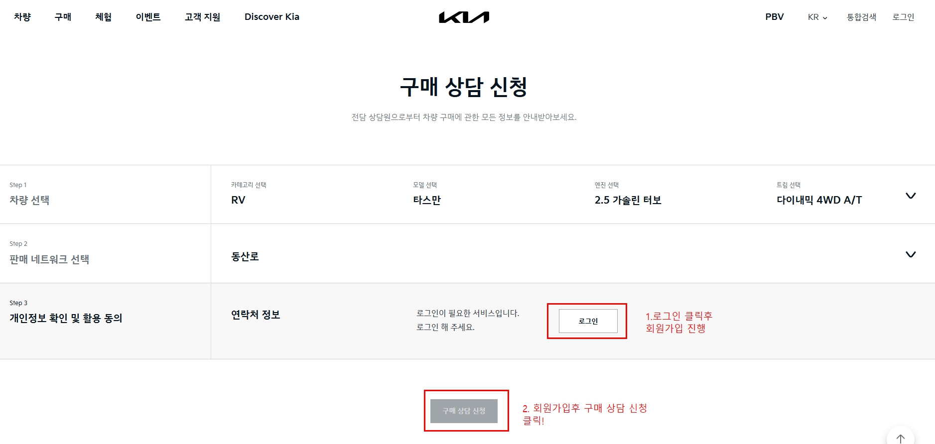 제일 처음 기아 홈페이지 접속을 한후에 아래 그림대로 따라 하시면 됩니다!